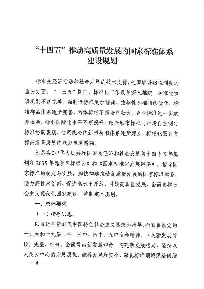 為貫徹落實《國家標準化發(fā)展綱要》,指導國家標準的制定與實施,加快構(gòu)建推動高質(zhì)量發(fā)展的國家標準體系,國家標準化管理委員會會同有關部門組織編制了《“十四五”推動高質(zhì)量發(fā)展的國家標準體系建設規(guī)劃》,現(xiàn)印發(fā)給你們,請按照執(zhí)行。