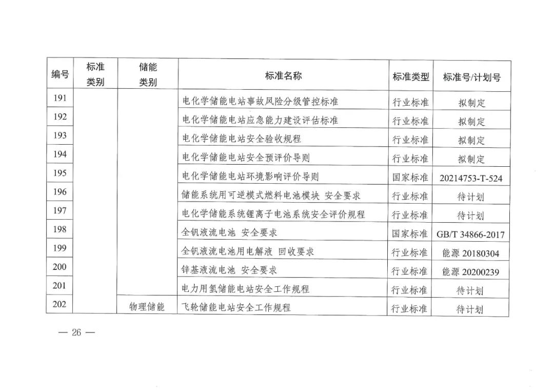 文件提出,2023年制修訂100項(xiàng)以上新型儲能重點(diǎn)標(biāo)準(zhǔn),加快制修訂設(shè)計規(guī)范、安全規(guī)程、施工及驗(yàn)收等儲能電站標(biāo)準(zhǔn),開展儲能電站安全標(biāo)準(zhǔn)、應(yīng)急管理、消防等標(biāo)準(zhǔn)預(yù)研,盡快建立完善安全標(biāo)準(zhǔn)體系,結(jié)合新型電力系統(tǒng)建設(shè)需求,初步形成新型儲能標(biāo)準(zhǔn)體系,基本能夠支撐新型儲能行業(yè)商業(yè)化發(fā)展。