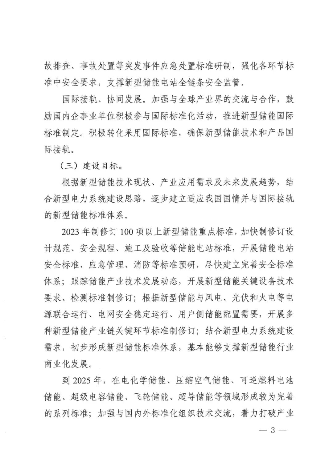 到2025年,在電化學(xué)儲能、壓縮空氣儲能、可逆燃料電池儲能、超級電容儲能、飛輪儲能、超導(dǎo)儲能等領(lǐng)域形成較為完善的系列標(biāo)準(zhǔn);加強(qiáng)與國內(nèi)外標(biāo)準(zhǔn)化組織技術(shù)交流,著力打破產(chǎn)業(yè)發(fā)展瓶頸,規(guī)范引導(dǎo)產(chǎn)業(yè)高質(zhì)量發(fā)展,保障儲能電站安全;加大國際標(biāo)準(zhǔn)化力度, 深度參與國際電工委員會(IEC) 國際標(biāo)準(zhǔn)化工作,支撐標(biāo)準(zhǔn)走出去。逐步構(gòu)建適應(yīng)技術(shù)創(chuàng)新趨勢、滿足產(chǎn)業(yè)發(fā)展需求、對標(biāo)國際先進(jìn)水平的新型儲能標(biāo)準(zhǔn)體系。