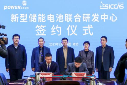 2月22日,華豐動(dòng)力股份有限公司與中國科學(xué)院上海硅酸鹽研究所就成立“新型儲(chǔ)能電池聯(lián)合研發(fā)中心”簽約儀式在濰坊市高新區(qū)管委會(huì)隆重舉行。