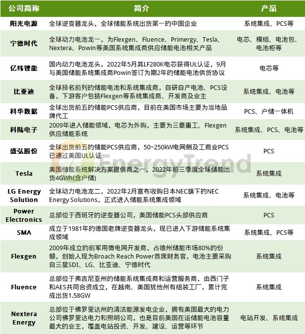 美國儲(chǔ)能市場(chǎng)主要參與者介紹