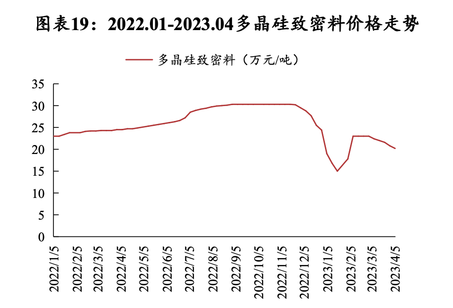 硅料價(jià)格持續(xù)下行,數(shù)據(jù)顯示,多晶硅致密料價(jià)格相較去年高點(diǎn)已接近腰斬。據(jù)集邦新能源網(wǎng)預(yù)計(jì),本月硅料價(jià)格仍將保持下跌態(tài)勢,同時(shí)隨硅片產(chǎn)出持續(xù)大量釋放,價(jià)格有望保持下跌態(tài)勢,電池片價(jià)格也將跟隨下降。