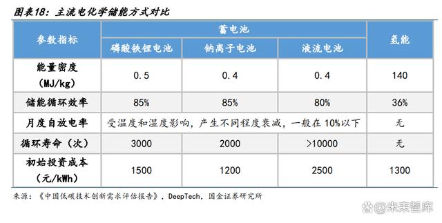 氫能適用于大規(guī)模和長周期的儲能,具備無自衰減、擴容成本低等特性。氫儲能主要 指將太陽能、風能等間歇性可再生能源余電或無法并網(wǎng)的棄電,通過電解水制氫的方 式儲存,可就地消納、時經(jīng)燃料電池進行發(fā)電或管道、長管車運輸?shù)确绞焦谙掠?應用終端。相較于抽水儲能、壓縮空氣儲能、蓄電池儲能(鋰電)具有無自衰減、擴 容成本低、能量密度大、能源發(fā)電轉(zhuǎn)移便捷等優(yōu)點,憑借其無自衰減的特性,尤其適 用于跨周和季度的儲能。基于擴容成本低的特點,即僅需增加氫瓶即可擴充儲能容量, 適用于大規(guī)模的儲能,在短周期內(nèi)儲能效率較低。