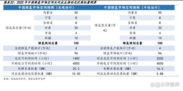 歐盟提出可再生氫(綠氫)定義規(guī)則,三大條定義核心全部與可再生能源發(fā)電掛鉤, 制取氫氣電力中的 90%是可再生能源發(fā)電,這樣制取的氫才能稱為綠氫。因此,基于 光伏年發(fā)電小時數(shù)的限制,電解槽一年的運行時間與光伏設備運營時間高度相關(guān)。以 電解槽匹配光伏制氫為例測算,分樂觀情況下,電解槽年運行 1400 小時和中性情況 下,年運行2500小時,分別對應90萬噸綠氫規(guī)劃總量下,可裝電解槽37.8GW和21.2GW, 反推動光伏裝機量 47.3GW 和 26.5GW。預計在未來技術(shù)迭代和成本逐步下降的情況下, 2025 年后電解水設備及綠氫市場將持續(xù)加速,反推動可再生能源量也將高增。