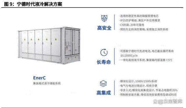 各大主流集成廠商近年來均推出了液冷產(chǎn)品,在能量密度、電池壽命上較風(fēng) 冷產(chǎn)品有了顯著提升。陽光電源的 PowerTitan 產(chǎn)品采用液冷溫控的方式,實(shí) 現(xiàn)了所有電芯溫差小于 2.5℃,使電池壽命延長 2 年以上。海博思創(chuàng)的HyperA2-C3354、HyperA2-C6709 產(chǎn)品采用了同程均衡液冷管路設(shè)計,實(shí)現(xiàn)了 溫差不超過 3℃,電池壽命延長 20%。比亞迪的 Cube T28 產(chǎn)品采用了液冷技術(shù), 空間利用率遠(yuǎn)遠(yuǎn)高于傳統(tǒng)預(yù)留風(fēng)道的風(fēng)冷系統(tǒng)。寧德時代的 EnerC 產(chǎn)品,能量 密度較傳統(tǒng)風(fēng)冷系統(tǒng)提高了近兩倍,可將單簇 416 個電芯溫差控制在 3°C 以內(nèi), 全系統(tǒng) 4160 個電芯溫差控制在 5°C 以內(nèi)。
