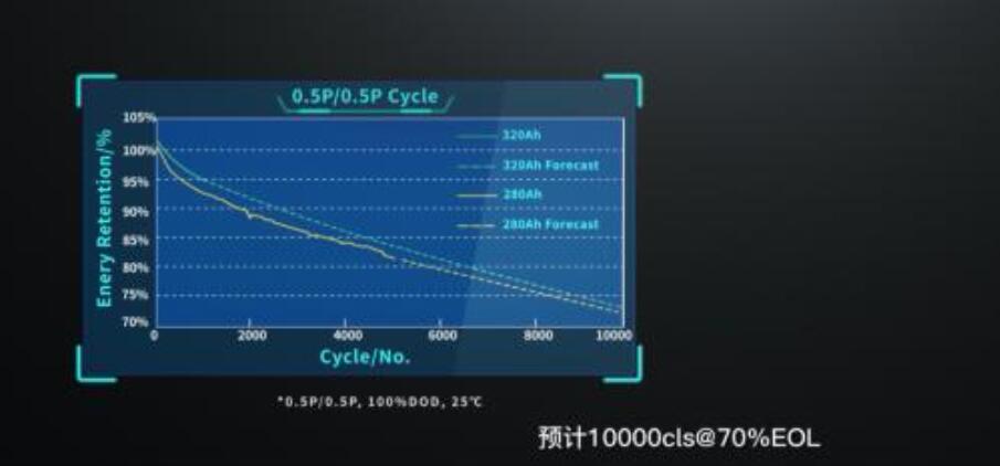 據(jù)官網(wǎng)介紹,這款300Ah電力儲(chǔ)能專用電池在與280Ah電池尺寸規(guī)格不變的情況下,可實(shí)現(xiàn)前三年“零”衰減(前1000次循環(huán),容量/能量衰減率≤2%),循環(huán)壽命可達(dá)12000次(可滿足15-20年應(yīng)用場景需求)。