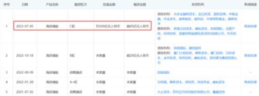 (海辰儲(chǔ)能歷次融資情況,圖片來源:企查查)