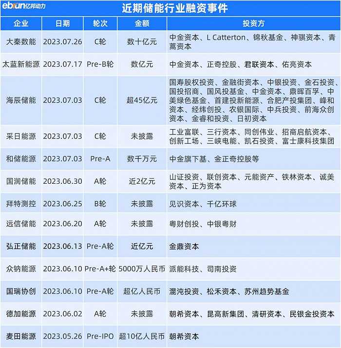 7月5日,海辰儲能完成C輪融資,由國壽股權和金融街資本共同領投,金額超45億元,是已知目前儲能行業(yè)2023年金額最大的一筆融資。海辰儲能是一家從事鋰電池核心材料、磷酸鐵鋰儲能電池及系統(tǒng)的研發(fā)、生產(chǎn)和銷售業(yè)務的企業(yè)。7月3日證監(jiān)會發(fā)布公告顯示,海辰儲能上市輔導備案已獲受理,正式進入IPO上市流程。