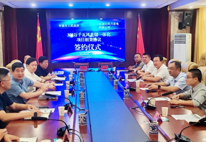 8月10日,內(nèi)蒙古烏蘭察布豐鎮(zhèn)市人民政府與廣東粵電湛江風(fēng)力發(fā)電有限公司舉行能源產(chǎn)業(yè)合作項(xiàng)目簽約儀式, 共同推進(jìn)300萬千瓦 “風(fēng)光儲一體化”項(xiàng)目落地, 政企攜手推動綠色低碳轉(zhuǎn)型邁上新臺階。