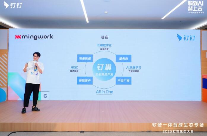 明我的分布式解決方案不僅為用戶提供了硬件服務(wù),還在釘釘平臺上進(jìn)行了軟件服務(wù)的升級。相較于傳統(tǒng)的硬件銷售模式,這次的方案體現(xiàn)了數(shù)字化的深度。在釘釘上,用戶無需再通過PPT來了解產(chǎn)品,而是可以通過在線CAD和數(shù)字展廳與產(chǎn)品互動。一旦提出需求,他們就可以看到一個(gè)在線數(shù)字方案。結(jié)合AIGC技術(shù),用戶能夠迅速了解產(chǎn)品的細(xì)節(jié)。