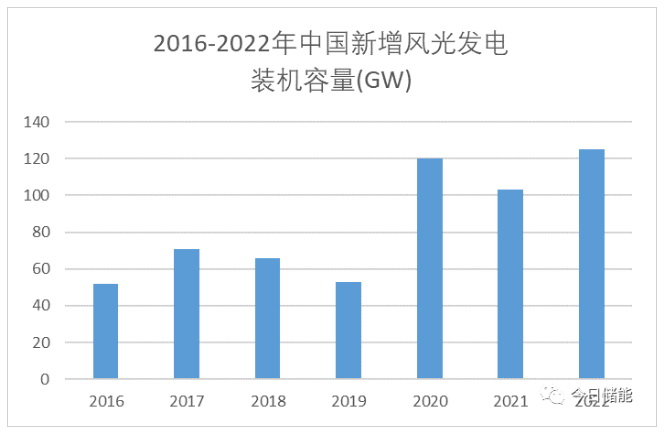 中國(guó)新增風(fēng)光發(fā)電裝機(jī)容量圖 (數(shù)據(jù)來(lái)源:國(guó)家能源局、中電聯(lián),iFinD)