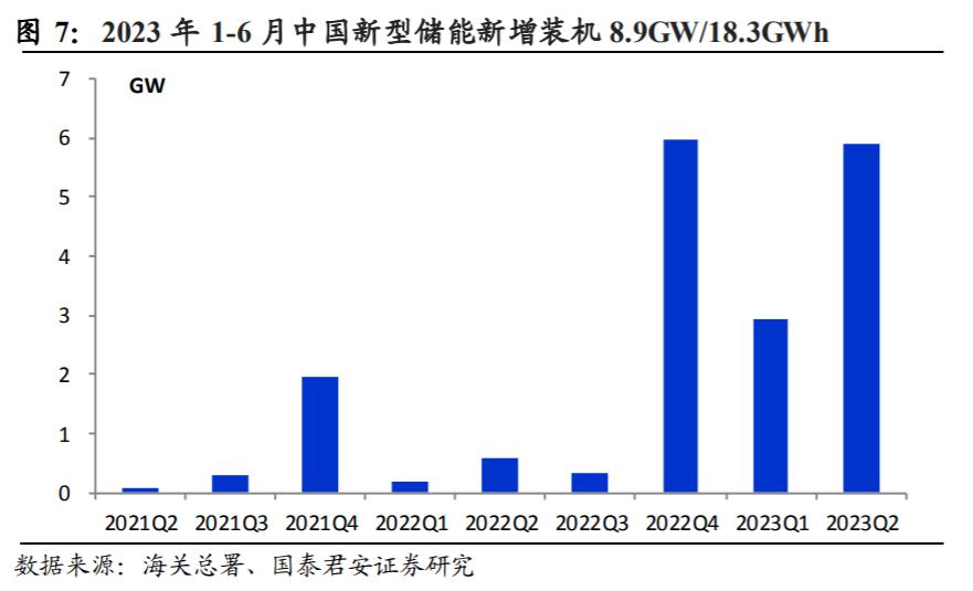 據(jù)中關(guān)村儲能產(chǎn)業(yè)技術(shù)聯(lián)盟(CNESA)數(shù)據(jù),2023年第二季度,我國新型儲能新增裝機(jī)5.9GW/12.3GWh,環(huán)比增長96.7%/105%;意想不到的是,今年上半年,我國新增投運(yùn)新型儲能規(guī)模達(dá)到8.0GW/16.7GWh,超過去年全年的水平。