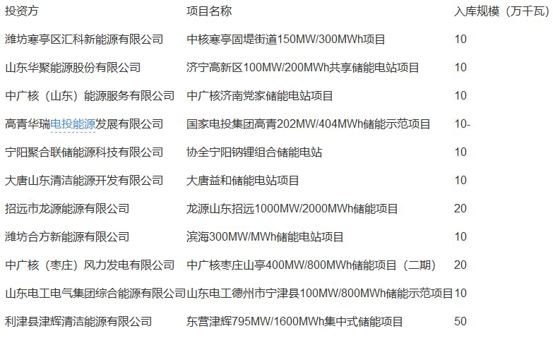 2023年新型儲(chǔ)能入庫(kù)項(xiàng)目(第一批)部分公示名單