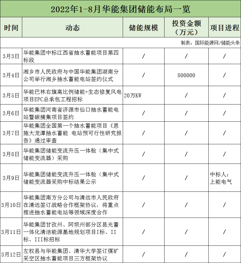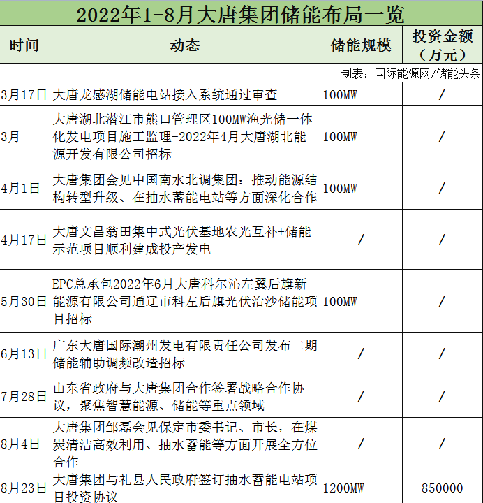 據(jù)不完全統(tǒng)計,2022年1-8月,大唐集團儲能項目招標(biāo)3個,與山東、保定、南水北調(diào)集團等簽訂合作協(xié)議,涉及抽水蓄能、智慧能源等領(lǐng)域。