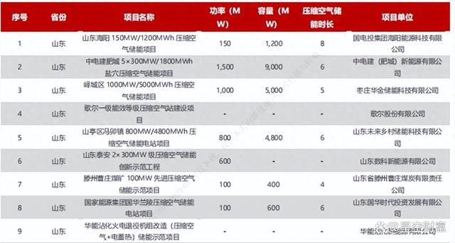 目前來看,在政策的不斷推動下,全國壓縮空氣儲能的備案、簽約、再建、投運的項目合計已經(jīng)超過了35個,示范項目規(guī)模已經(jīng)從KW級逐步成長到百MW量級,筆者初步統(tǒng)計的項目容量已達超過了7.3GW,中國能建(601868)、中儲國能都是重要參與者。