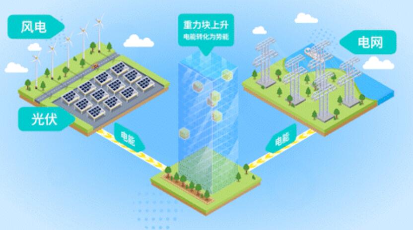 這是一種新型儲能技術(shù),其原理是利用構(gòu)筑物、自然或人工地形等產(chǎn)生的高度差,通過人工智能算法控制儲能塊的垂直提升和水平位移,實現(xiàn)勢能與電能的轉(zhuǎn)換。