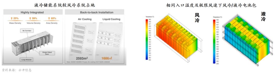 固定開支:液冷不需要預(yù)留散熱通道,將大幅節(jié)約大型儲能項目的占地面積。