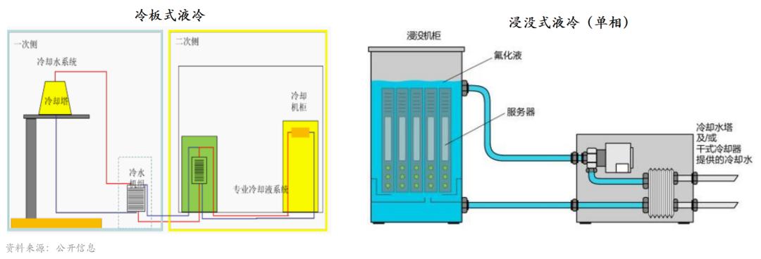根據(jù)冷卻液和服務(wù)器接觸換熱方式的不同,分為直接液冷和間接液冷,其中間接液冷以冷板式液冷技術(shù)為主,直接液冷以浸沒式液冷技術(shù)為主。