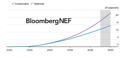 圖:中國(guó)液流電池裝機(jī)規(guī)模預(yù)測(cè)(彭博新能源財(cái)經(jīng))