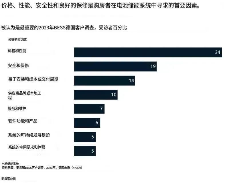 定制產品將幫助住宅客戶實現(xiàn)自給自足、優(yōu)化自耗和降低峰值功耗等目標,這意味著該領域將擁有更高的利潤。在對替代能源購買的消費者調查中表明,用戶對電化學儲能產品的興趣將歸結為幾個因素,首先是價格、安全性和易于安裝等。