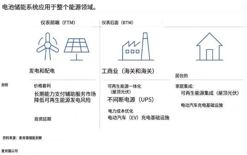 電化學儲能分為三個部分:電表前端 (FTM) 公用事業(yè)規(guī)模安裝,通常大于 10 兆瓦時 (MWh);用戶側 (BTM) 商業(yè)和工業(yè)裝置,通常范圍從 30 千瓦時 (kWh) 到 10 MWh;和BTM住宅裝置,通常小于30 kWh。