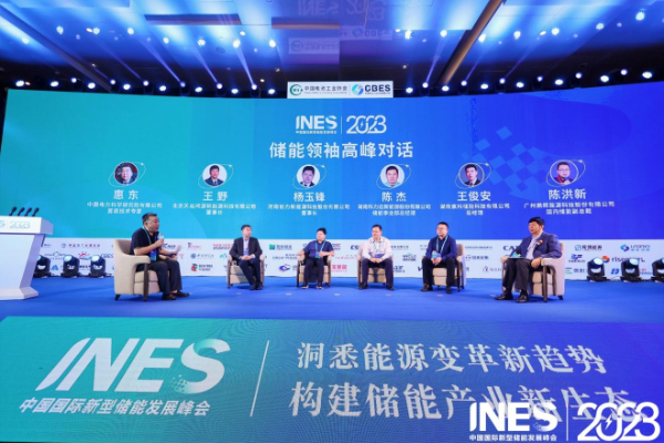 儲能領(lǐng)袖高峰對話環(huán)節(jié)由中國電力科學(xué)研究院有限公司首席技術(shù)專家、中國電池工業(yè)協(xié)會儲能分會專家委員會主任委員惠東主持,北京天啟鴻源新能源科技有限公司董事長王野、廣州鵬輝能源科技股份有限公司國內(nèi)儲能副總裁陳洪新、河南創(chuàng)力新能源科技股份有限公司董事長楊玉鋒、湖南科力遠新能源股份有限公司儲能事業(yè)部總經(jīng)理陳杰、湖南贏科儲能科技有限公司總經(jīng)理王俊安,分別圍繞主流技術(shù)特征、應(yīng)用場景和商業(yè)模式等角度闡述獨到見解。