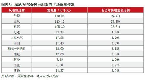 乘著風(fēng)電行業(yè)快速發(fā)展的契機(jī),國(guó)內(nèi)領(lǐng)頭風(fēng)電制造商占有巨大市場(chǎng)份額。以彼時(shí)的風(fēng)電龍頭企業(yè)華銳科技為例,2008年華銳裝機(jī)新增140.25萬千瓦,占據(jù)了當(dāng)年全國(guó)新增裝機(jī)的29.8%。