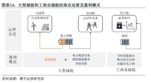成本下降的同時(shí),大儲(chǔ)和工商業(yè)儲(chǔ)能的盈利模式也日益清晰,大儲(chǔ)可通過共享租賃、現(xiàn)貨市場(chǎng)套利、提供輔助服務(wù)和獲取容量電價(jià)盈利,工商業(yè)儲(chǔ)能通過峰谷價(jià)差套利以及節(jié)約用能成本盈利。