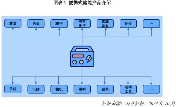 在戶外露營活動(dòng)中,便攜式儲(chǔ)能可以給手機(jī)、電腦等個(gè)人數(shù)碼產(chǎn)品充電,還可以給電 磁爐、冰箱、照明燈具、投影儀等較大功率的電器提供短時(shí)供電,滿足消費(fèi)者戶外運(yùn)動(dòng)、 戶外露營全部的用電需求。