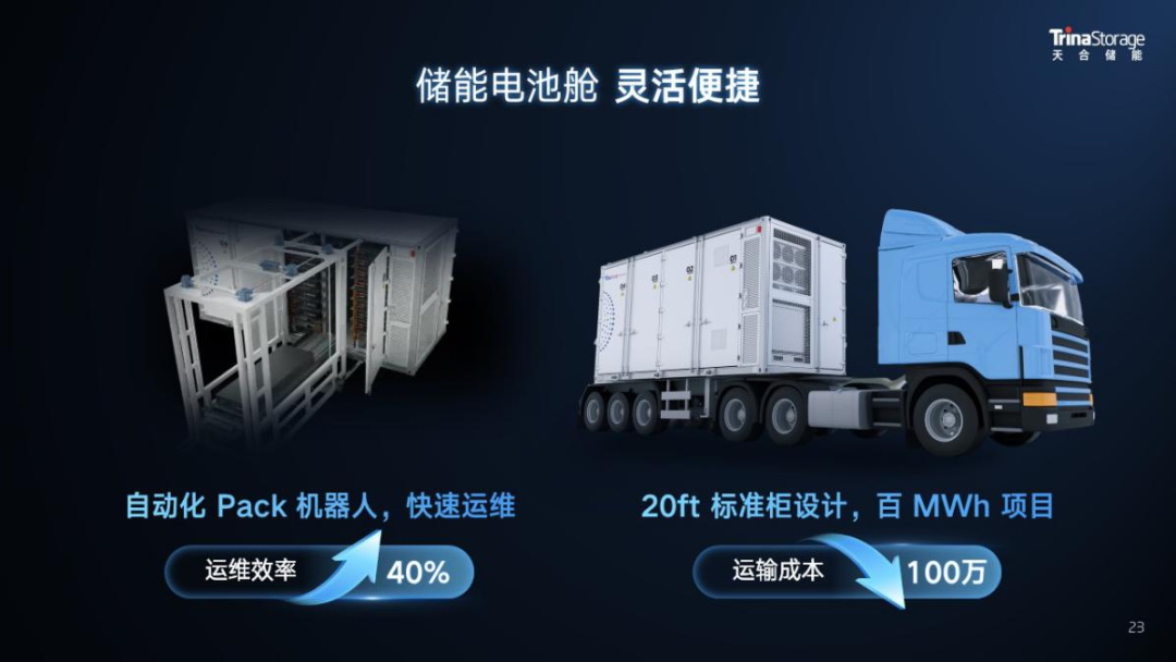 5MWh儲能系統(tǒng)在降本增效上具有突出優(yōu)勢,如更低的度電成本、更優(yōu)的組合方案,標(biāo)準(zhǔn)尺寸下更高的能量密度。同時,也面臨著一些挑戰(zhàn),如電芯一致性與電池簇間能量均衡管理,更大Pack設(shè)計下對于結(jié)構(gòu)、散熱、安全設(shè)計的挑戰(zhàn)以及約40噸重量運輸?shù)碾y題。天合儲能著眼當(dāng)前市場需求,創(chuàng)新提出天合方案。
