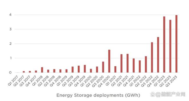 今年4月9日簽約的特斯拉儲能超級工廠,落戶上海臨港,初期規(guī)劃年產(chǎn)商用儲能電池1萬臺,儲能規(guī)模超過其加州工廠的產(chǎn)能,產(chǎn)品范圍覆蓋全球市場。從財(cái)報(bào)中的數(shù)據(jù)可以看出,特斯拉儲能的部署在 2023 年增長迅猛。