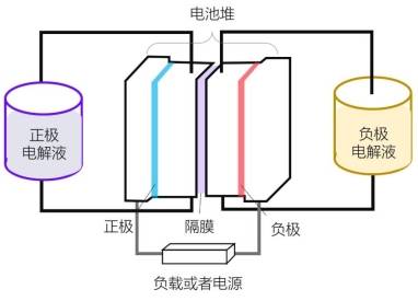 液流電池作為電化學(xué)儲(chǔ)能技術(shù)之一,其將陰陽(yáng)極電解液分別通過(guò)管路推入電堆中,通過(guò)活性元素的價(jià)態(tài)變化,在電能和化學(xué)能之間產(chǎn)生轉(zhuǎn)換來(lái)實(shí)現(xiàn)充放電。由于液流電池是將能量?jī)?chǔ)存于水性電解液中,且能量轉(zhuǎn)化不依賴于固體電極,因此沒(méi)有燃燒爆炸的風(fēng)險(xiǎn),符合儲(chǔ)能的安全需求。