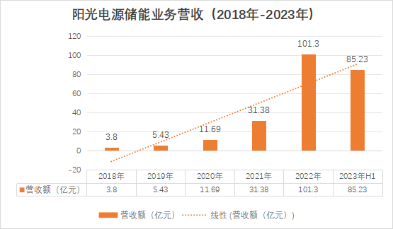 除了出貨量之外,業(yè)績(jī),也是一面鏡子,它是公司過往戰(zhàn)略的倒影。儲(chǔ)能營收的飛速增長,無疑也印證了陽光電源儲(chǔ)能布局和戰(zhàn)略定位的成功。2023年4月25日,陽光電源披露2022年年度報(bào)告,其儲(chǔ)能系統(tǒng)營收實(shí)現(xiàn)101.26億,首次破百億。2023年半年報(bào)顯示,僅半年其儲(chǔ)能營收已經(jīng)高達(dá)85.23億。