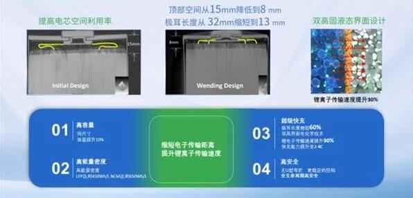 從電池技術角度來看,瑞浦蘭鈞 320Ah 問頂儲能電池采用首創(chuàng)的問頂技術,通過電池內部結構創(chuàng)新設計、雙高電極、電化學體系創(chuàng)新等,讓電池的頂部空間從 15mm 降低到 8mm,空間利用率有效提升 7% 以上,極耳長度從 32mm 縮短到 13mm,以及應用了雙高固液態(tài)界面設計,使得鋰離子傳輸速度提升 30%。另外,其體積能量密度也隨之提高 10%,原材料及部件成本節(jié)省 5%,無 U 型彎折有著更穩(wěn)定的結構,全方位實現(xiàn)高容量、高安全、高效率、長壽命等性能升級。
