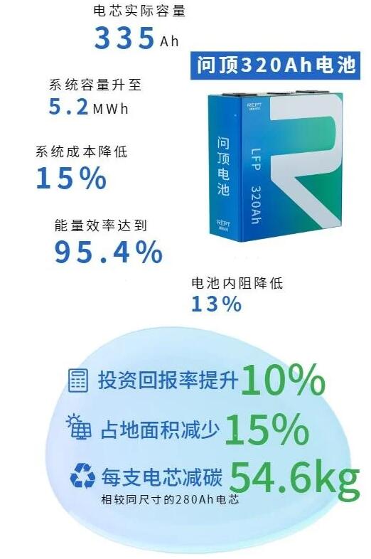 也就是說,當瑞浦蘭鈞 320Ah 問頂儲能電池進行規(guī)?;褂脮r,可實現(xiàn)系統(tǒng)成本降低 15%,占地面積減少 15%,投資回報率提升 10% 的目標,能極大提升客戶產品的市場競爭力,降低企業(yè)的周期性成本和資金風險。此外,每支 320Ah 問頂電池相較同尺寸的 280Ah 電池可減碳 54.6kg,實現(xiàn)減碳減排,助力碳中和。