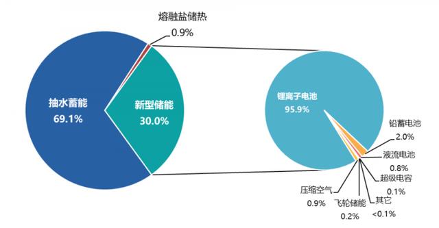 新型儲能是指除抽水蓄能以外的新型儲能技術(shù),包括鋰離子電池、液流電池、壓縮空氣、飛輪儲能、儲熱蓄冷、氫儲能等。相較于傳統(tǒng)抽水蓄能,新型儲能具有響應(yīng)速度快、建設(shè)周期短、調(diào)節(jié)性能高、選址布局靈活等優(yōu)勢。既可以發(fā)揮傳統(tǒng)儲能的“蓄水池”作用,在新能源發(fā)電量多的時候?qū)⒍嘤嚯娏績Υ?又可以發(fā)揮“充電寶”的效用,在發(fā)電量少的時候,向電網(wǎng)送電,促使整體電力系統(tǒng)安全穩(wěn)定運(yùn)行。
