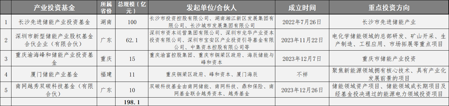 事實(shí)上,為服務(wù)“雙碳”戰(zhàn)略,促進(jìn)新型儲(chǔ)能產(chǎn)業(yè)發(fā)展,各地在推動(dòng)儲(chǔ)能產(chǎn)業(yè)發(fā)展上已推出多項(xiàng)舉措,其中“國家隊(duì)”的身影亦是頻頻出現(xiàn)。21世紀(jì)經(jīng)濟(jì)報(bào)道記者注意到,僅是近兩年重點(diǎn)投資方向聚焦儲(chǔ)能產(chǎn)業(yè)的基金就有5支,基金總規(guī)模達(dá)到了198.1億元。