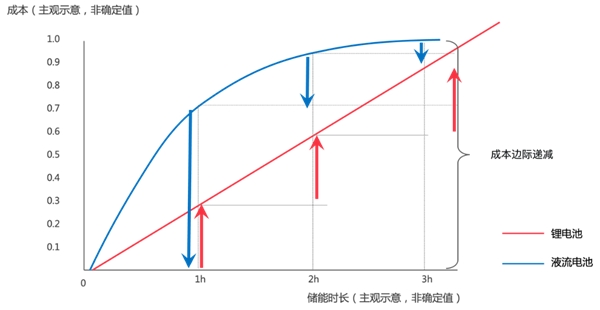 在結(jié)構(gòu)層面,鋰離子電池將功率輸出與能量儲存裝置緊密結(jié)合。如果要增加儲能時長,就要等比例增加電池成本。因此,4小時儲能系統(tǒng)的電池成本相當于1小時儲能系統(tǒng)成本的4倍。鋰離子電池在長時儲能領域并不具備經(jīng)濟性。