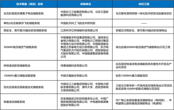 圖:第三批能源領域首臺(套)重大技術裝備(項目)名單——新型儲能賽道