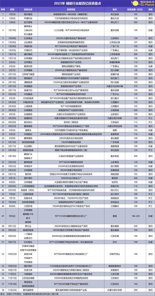 ※ 圖表:2023年度 儲能行業(yè)超百億投資盤點 來源:星球儲能所
