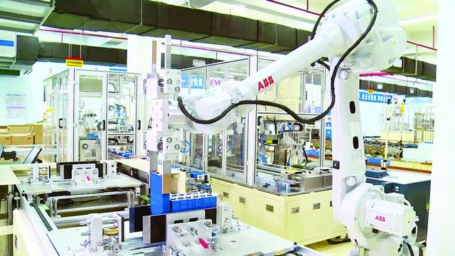 億緯鋰能方形鐵鋰電池模組自動(dòng)化生產(chǎn)車間。