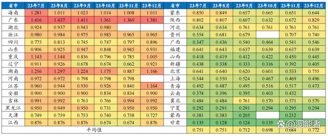 2023年下半年國(guó)內(nèi)各省月度峰谷價(jià)差統(tǒng)