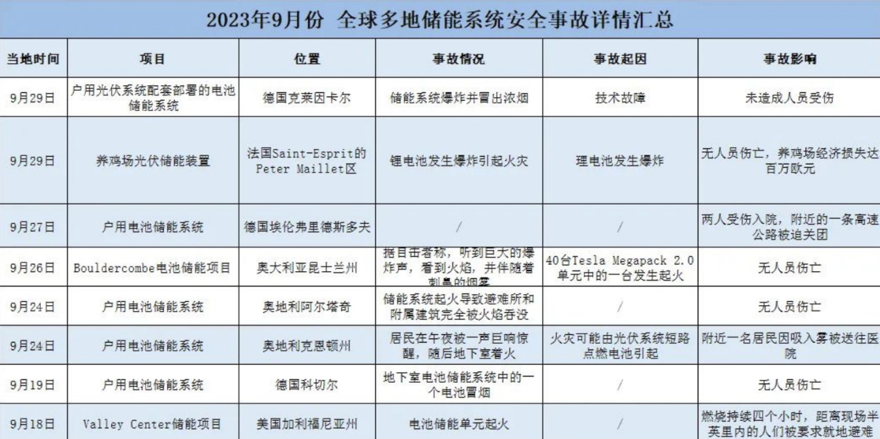 據(jù)不完全統(tǒng)計(jì),僅9月下半月,全球就發(fā)生了8起儲能系統(tǒng)起火及爆炸事故。接連不斷的儲能電池起火事件,讓儲能安全警鐘再次拉響。