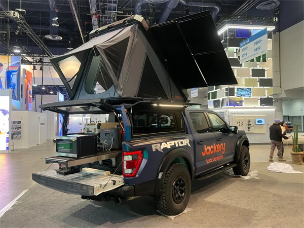 此次展出的基于越野的光充一體化車載帳篷解決方案,就是一套由搭載光伏板的車載帳篷和戶外電源組成的光儲充電系統(tǒng),通過太陽能板產(chǎn)生源源不斷的電能,并將其儲存到戶外電源中,從而為電器供電。