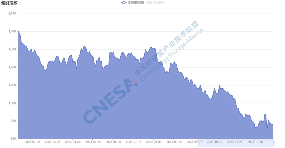 整體上,2023年儲能指數(shù)呈現(xiàn)高開低走的局面。