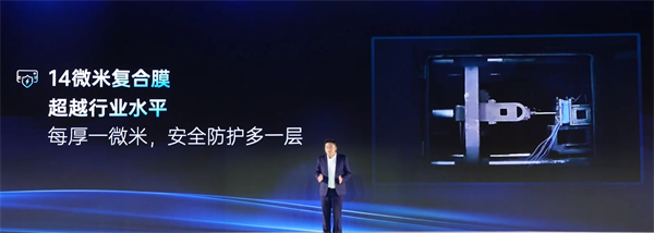 在安全防護方面,億緯鋰能也有多重創(chuàng)新設(shè)計,首先在電池隔膜方面選擇了14微米復(fù)合膜,超越行業(yè)水平。與此同時,億緯還開發(fā)了具有熱關(guān)斷的效應(yīng)的特殊隔膜涂層,當(dāng)溫度達到臨界值,涂層顆粒會融化關(guān)斷鋰離子的遷移,從源頭阻斷電芯熱失控的發(fā)生。