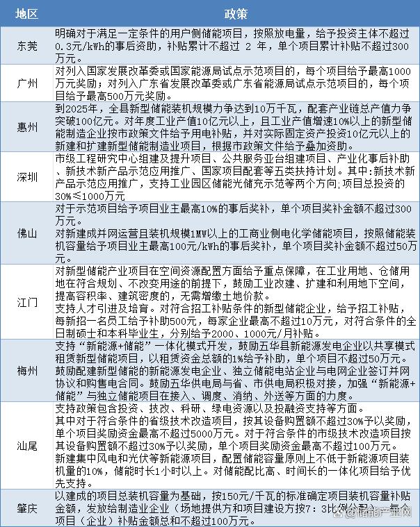 其實(shí),不止是東莞,廣州、惠州、深圳、佛山、江門(mén)、梅州、汕尾、肇慶在推動(dòng)儲(chǔ)能發(fā)展上都下足了功夫。