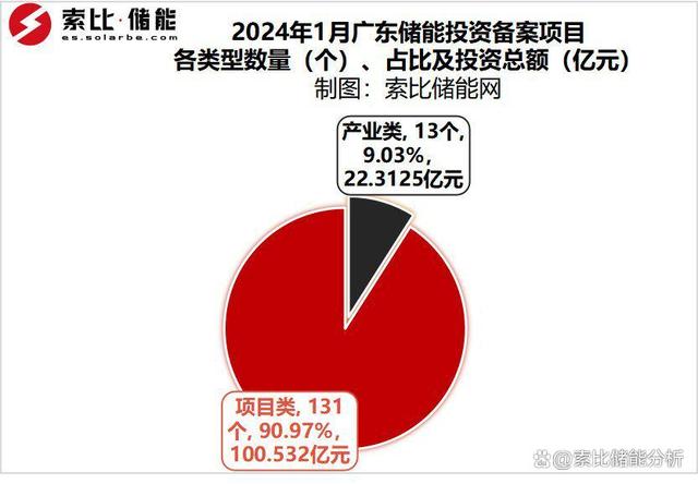 據(jù)索比儲能網(wǎng)不完全統(tǒng)計,2024年1月,廣東省儲能投資備案項目144個,總投資金額達(dá)122.8444995億元。其中產(chǎn)業(yè)類項目13個,投資額22.3125億元;項目類131個,規(guī)模為2723.523MW/ 5727.044MWh,投資金額100.5319995億元。