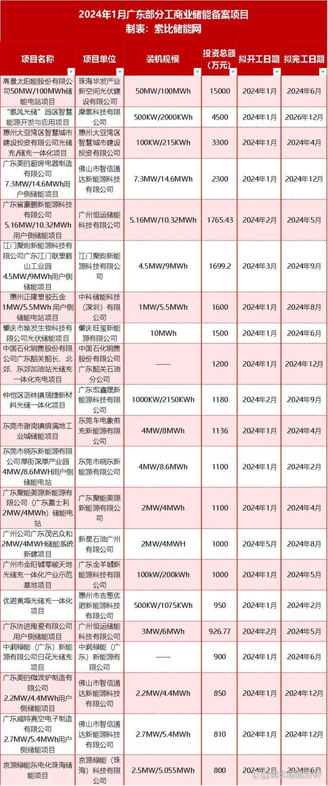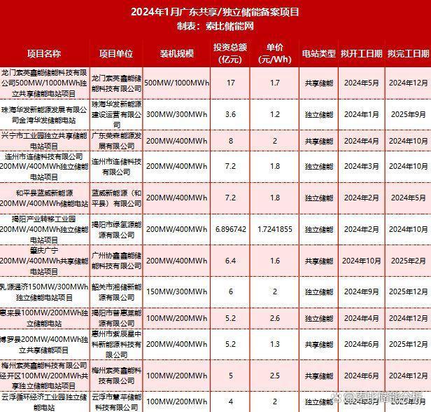 1月廣東儲能投資備案規(guī)模超120億元,工商儲項目116個