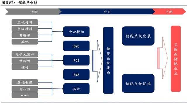 儲能上游為電池產業(yè)、電氣設備產業(yè),下游主要為電力系統(tǒng)參與企業(yè)。